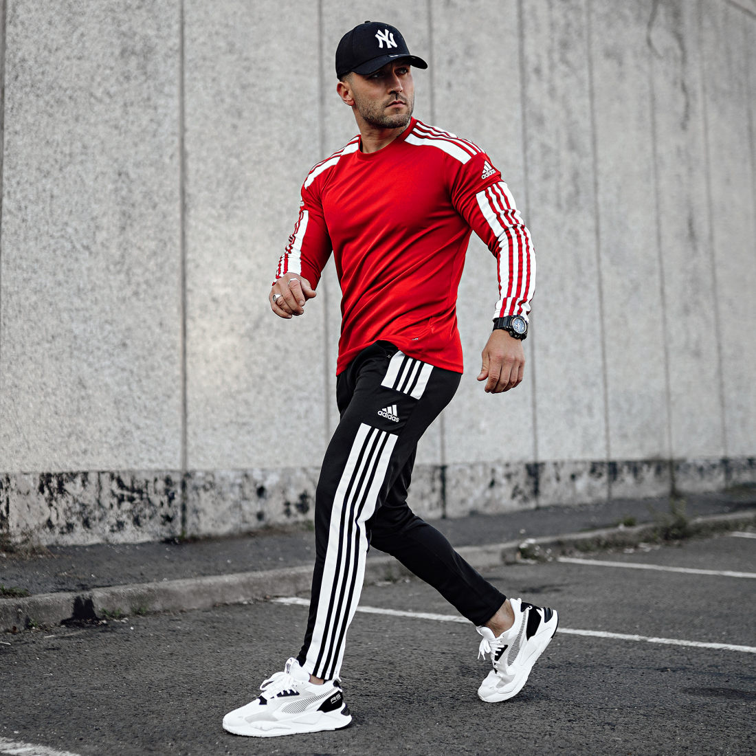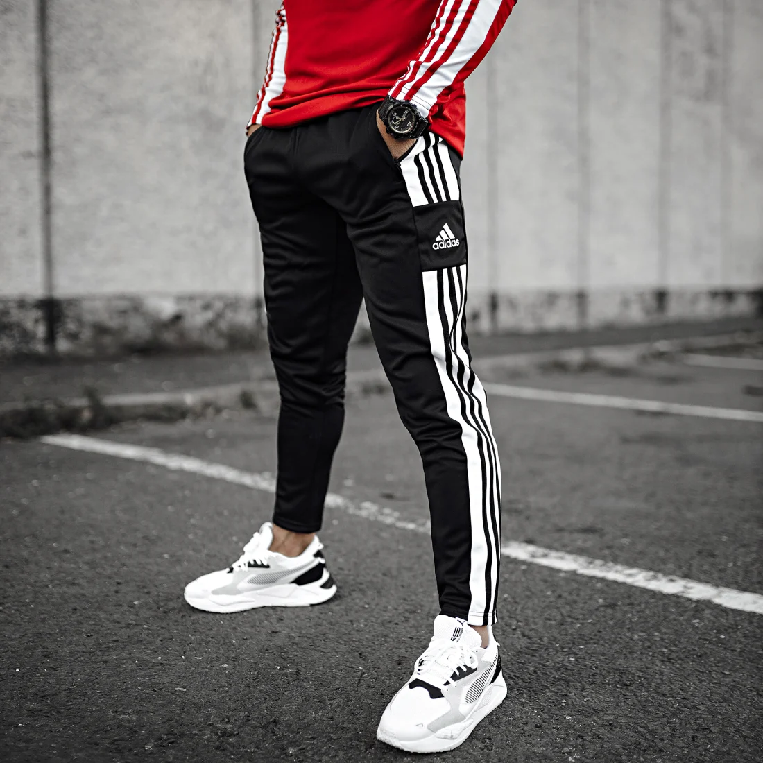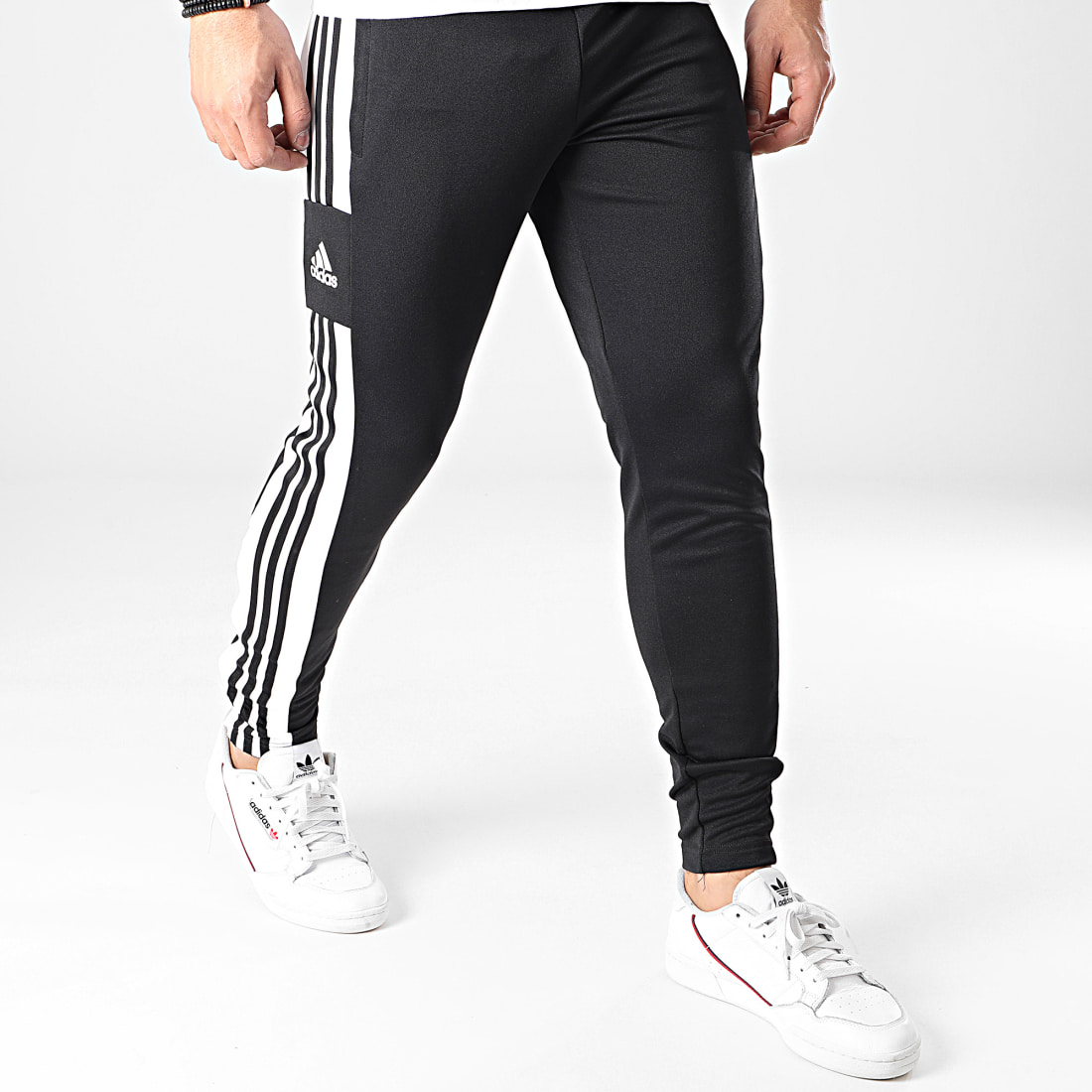 • Bandes adidas brodées le long des jambes